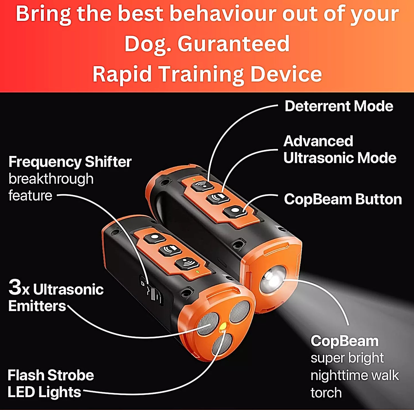 🐶 LED Flashlight & Police bright Light : This bark deterrent device has two unique lights, a LED Flash light and a Police Bright Light.