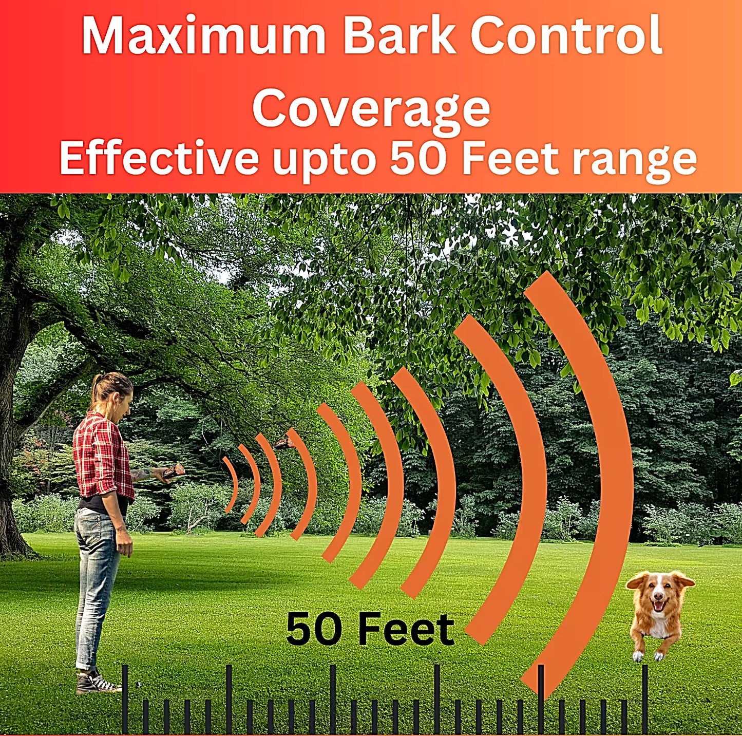 🐶 50ft Range:Covering an impressive 50-foot radius, this bark deterrent device effectively stops barking from both your dog and neighboring canines. Maintain control over your environment and enjoy a quieter, more peaceful atmosphere.