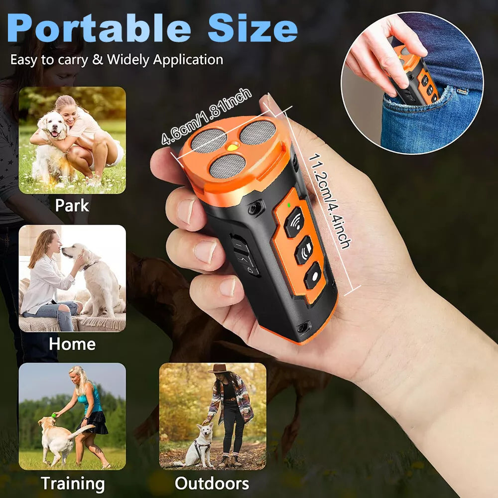 🐶 Triple Sonic Emitters:Equipped with not one, not two, but three powerful sonic emitters, our device emits a highly effective and safe ultrasonic sound when activated. This triple emittance technology ensures that even the most stubborn barkers get the message.