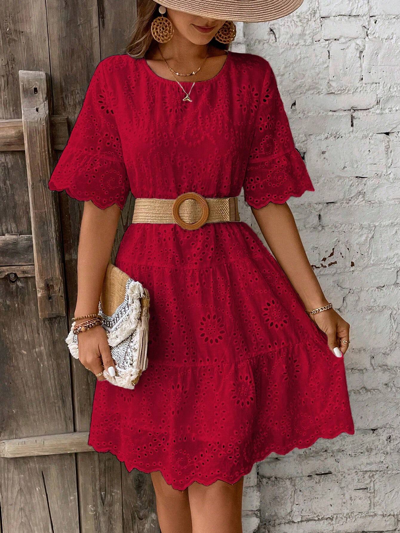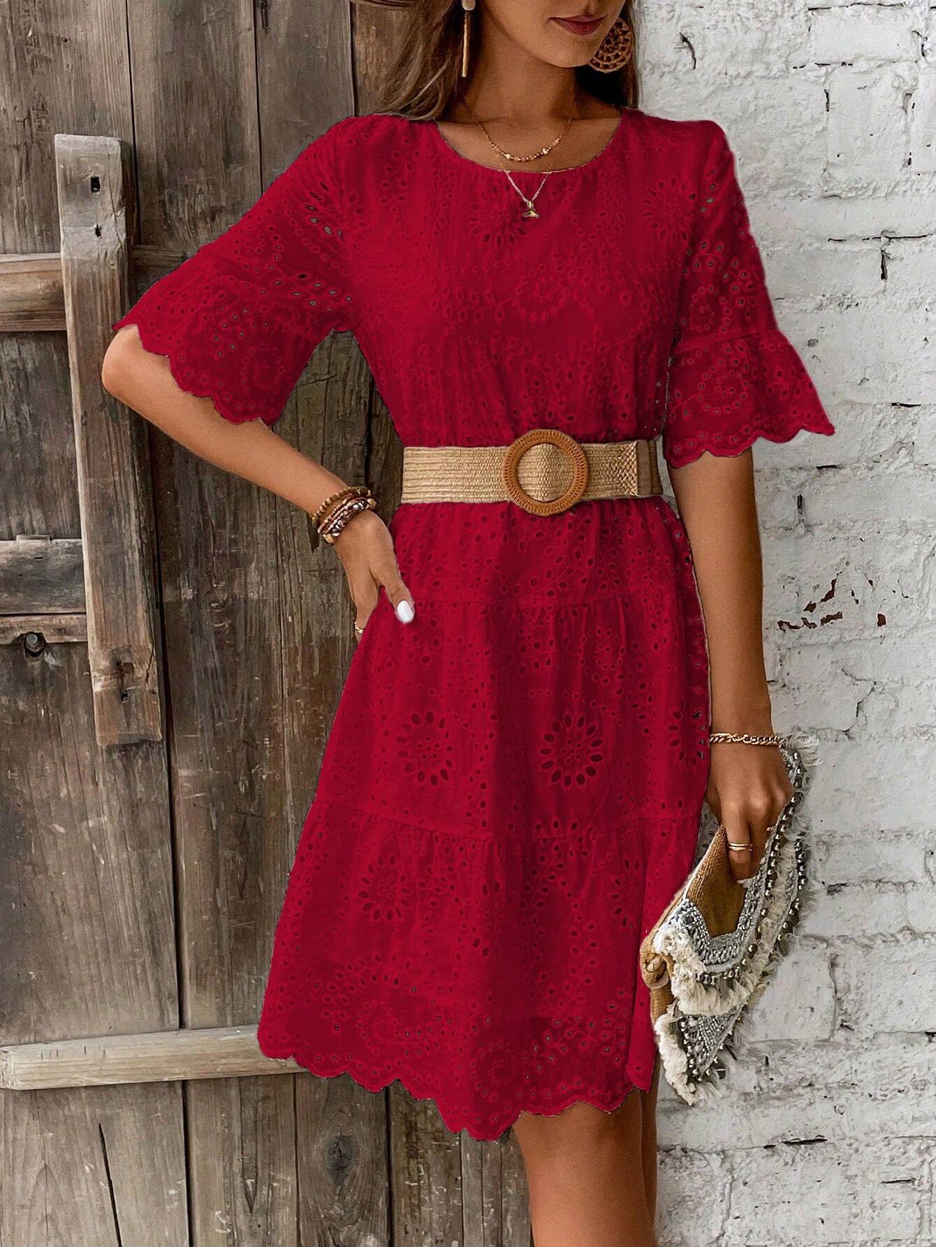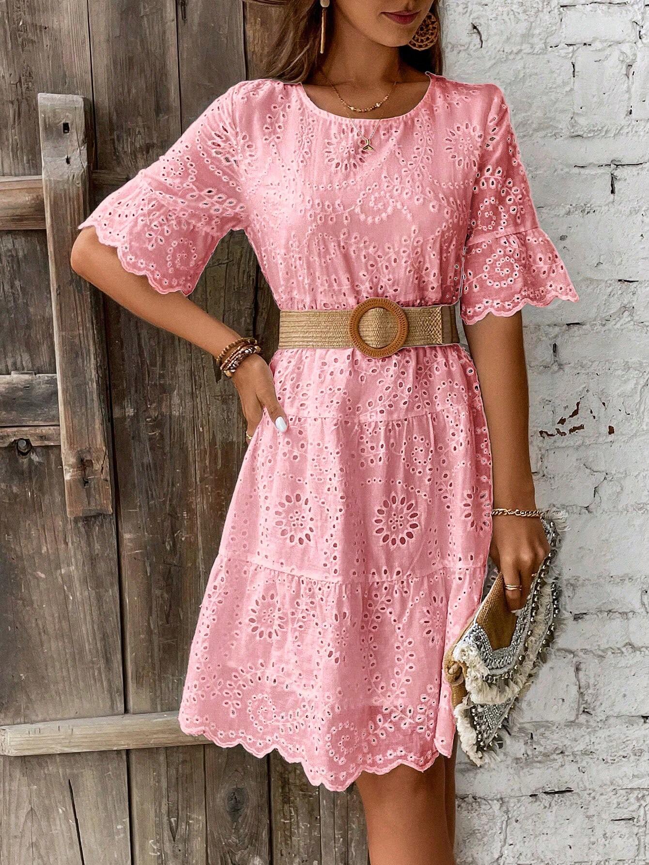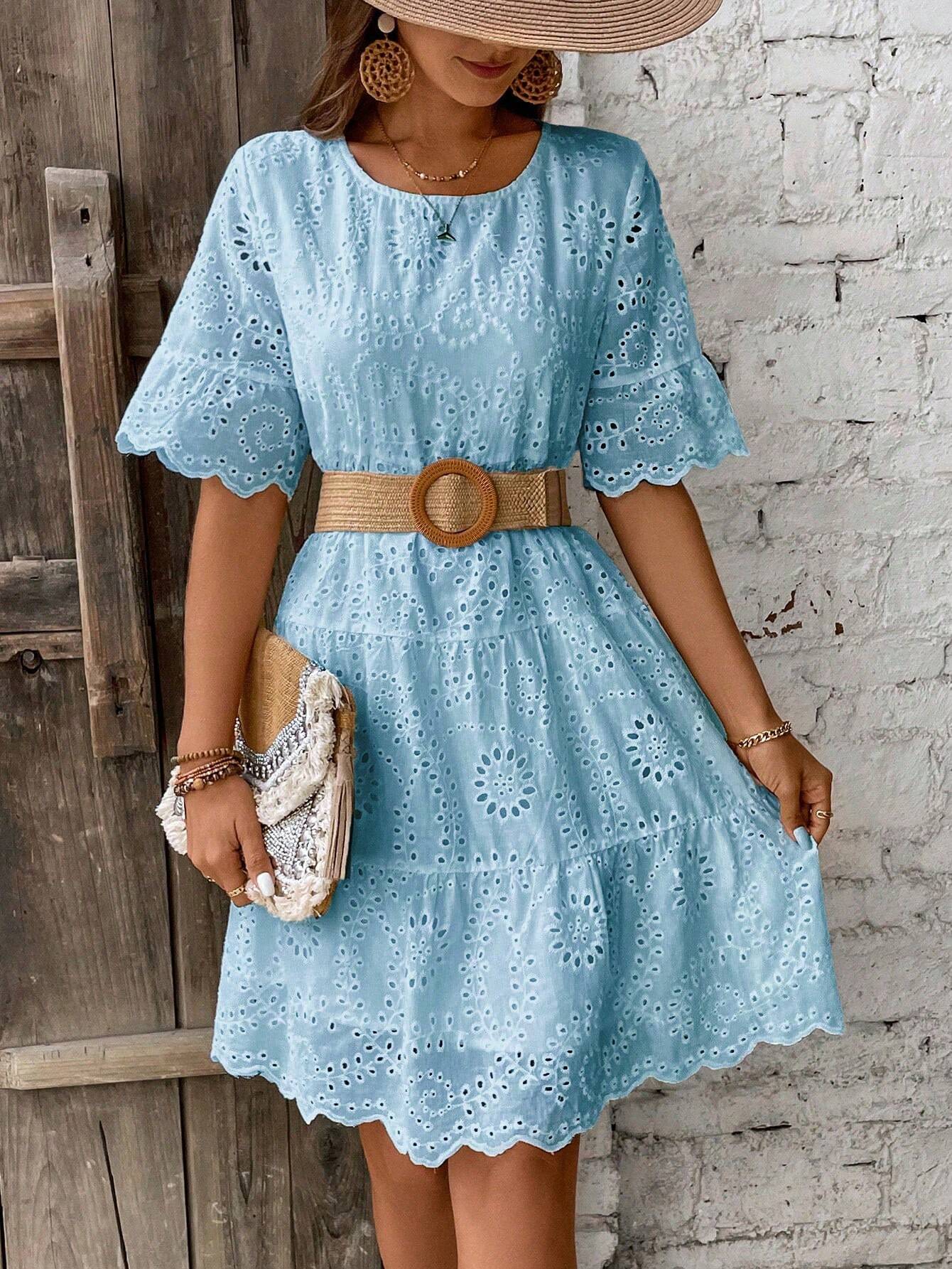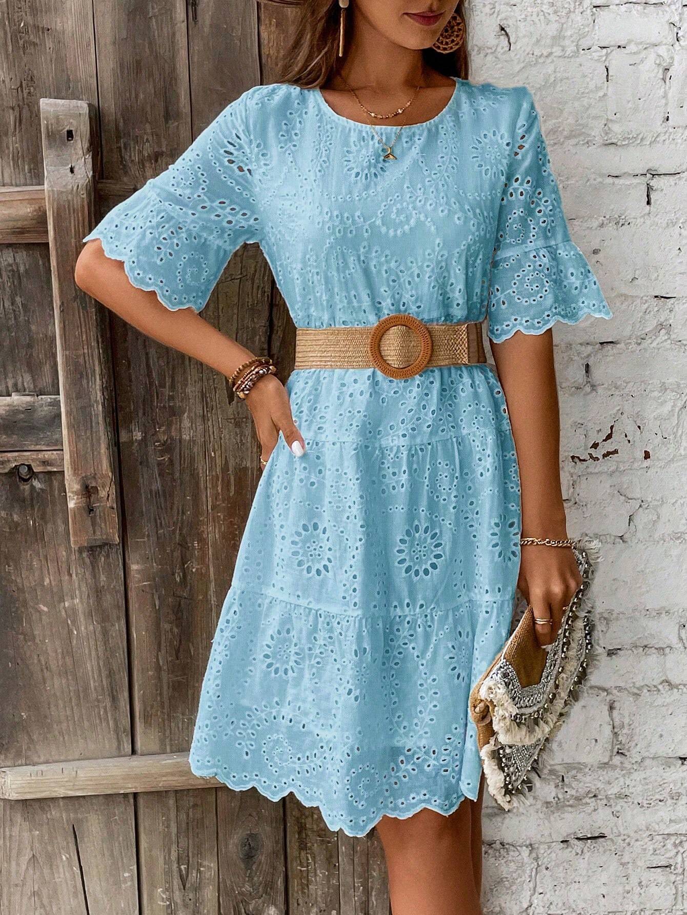 Embrace effortless elegance with the EMERY ROSE Boho Eyelet Smock Dress, a charming blend of vintage-inspired details and modern comfort. Designed with delicate eyelet embroidery, a graceful Peter Pan collar, and a ruffled hem, this dress exudes femininity and sophistication. The scallop half sleeves add a touch of romantic flair, while the loose, high-waist smock silhouette ensures a flattering and breezy fit. Crafted from 100% cotton woven fabric, it's lightweight, breathable, and perfect for spring and summer days. Whether you're heading to a casual brunch, a picnic, or a vacation getaway, this dress is a must-have for a chic yet relaxed look.