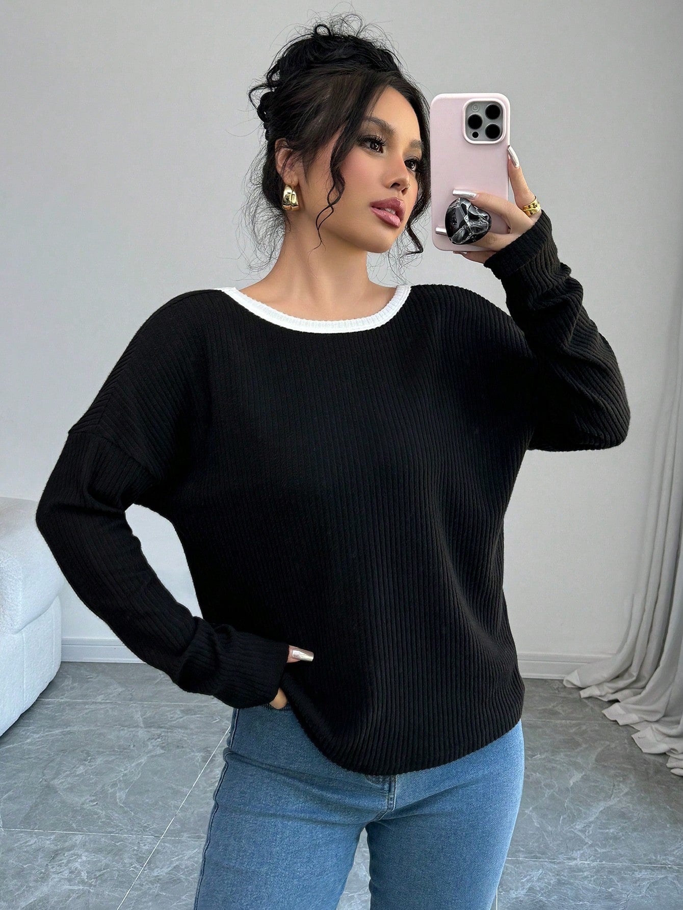 Long Sleeve & Round Neck: A classic combination for a polished yet relaxed look.