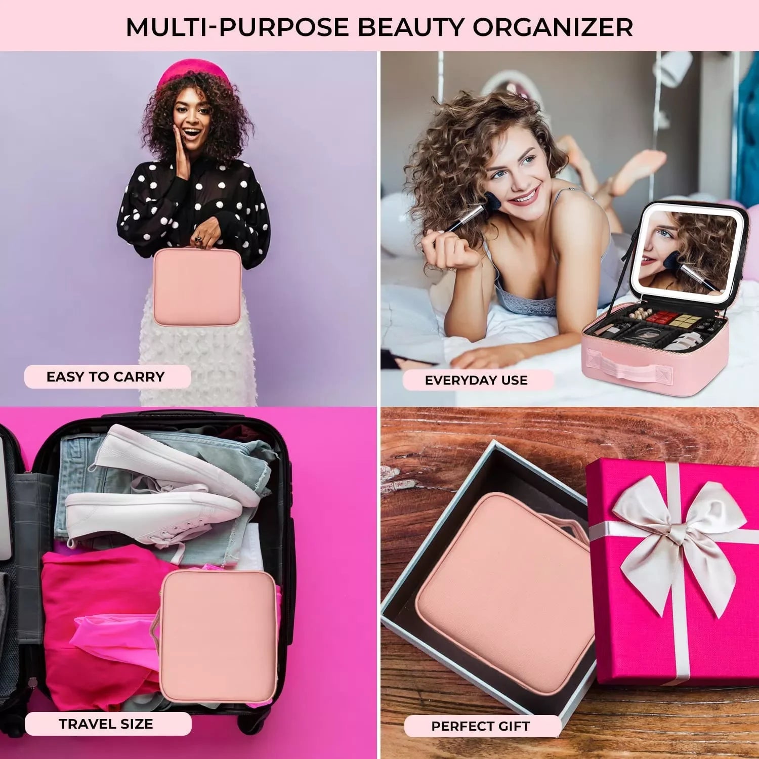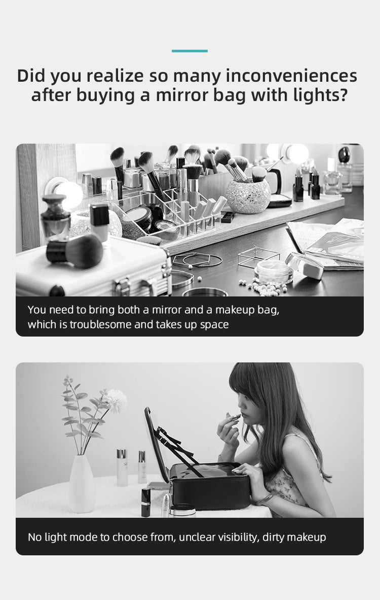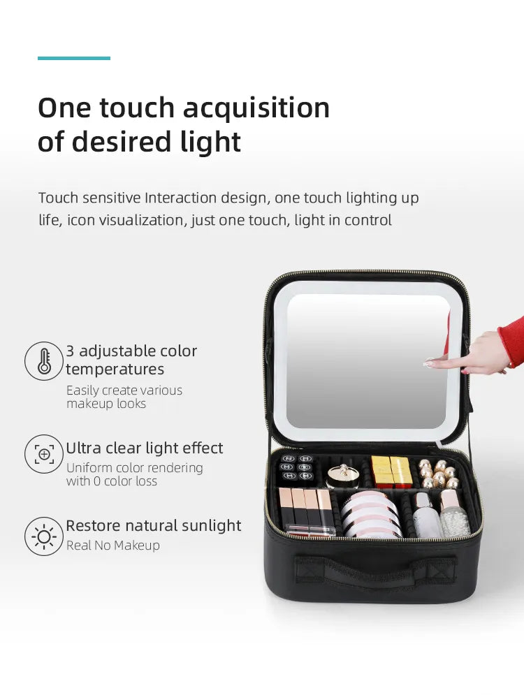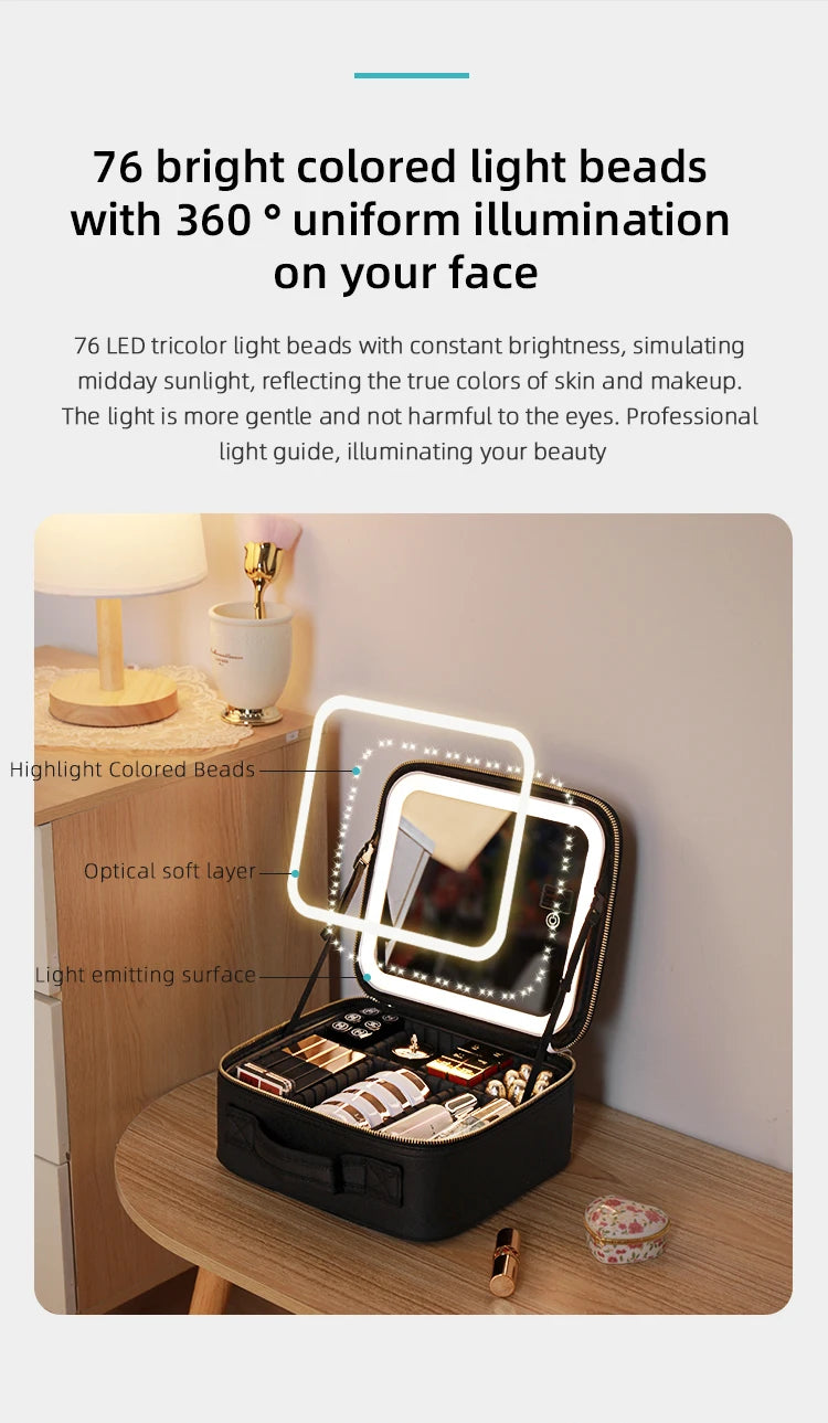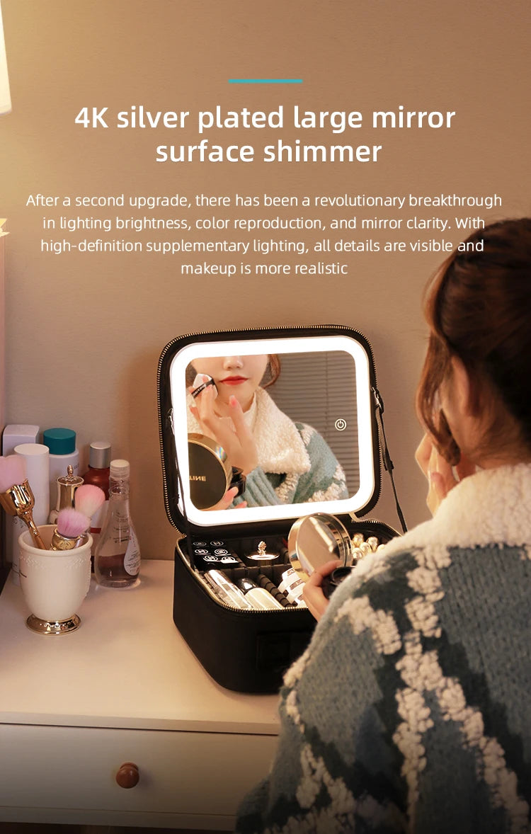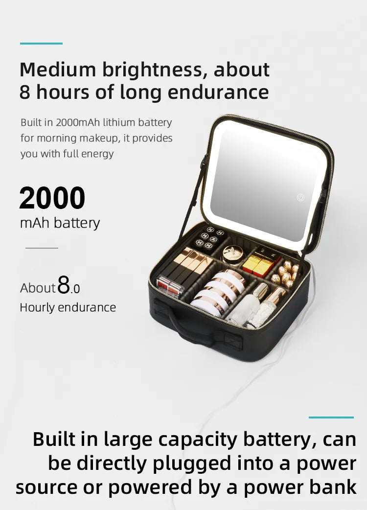 *GAME-CHANGING PORTABLE DRESSER: Large capacity cosmetic storage compartment, large makeup brush storage board, perfect lighting guarantee- thanks to an advanced luminous system which designed with 3 lighting environments, giving you the freedom to do your make-up comfortably anywhere. The innovation of this cosmetic case doesn't stop there: a single charge will last around one week.