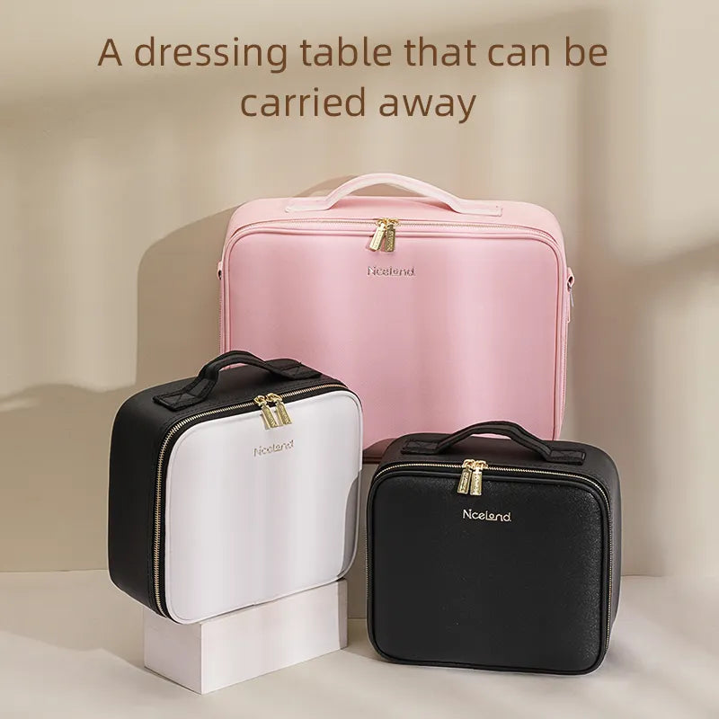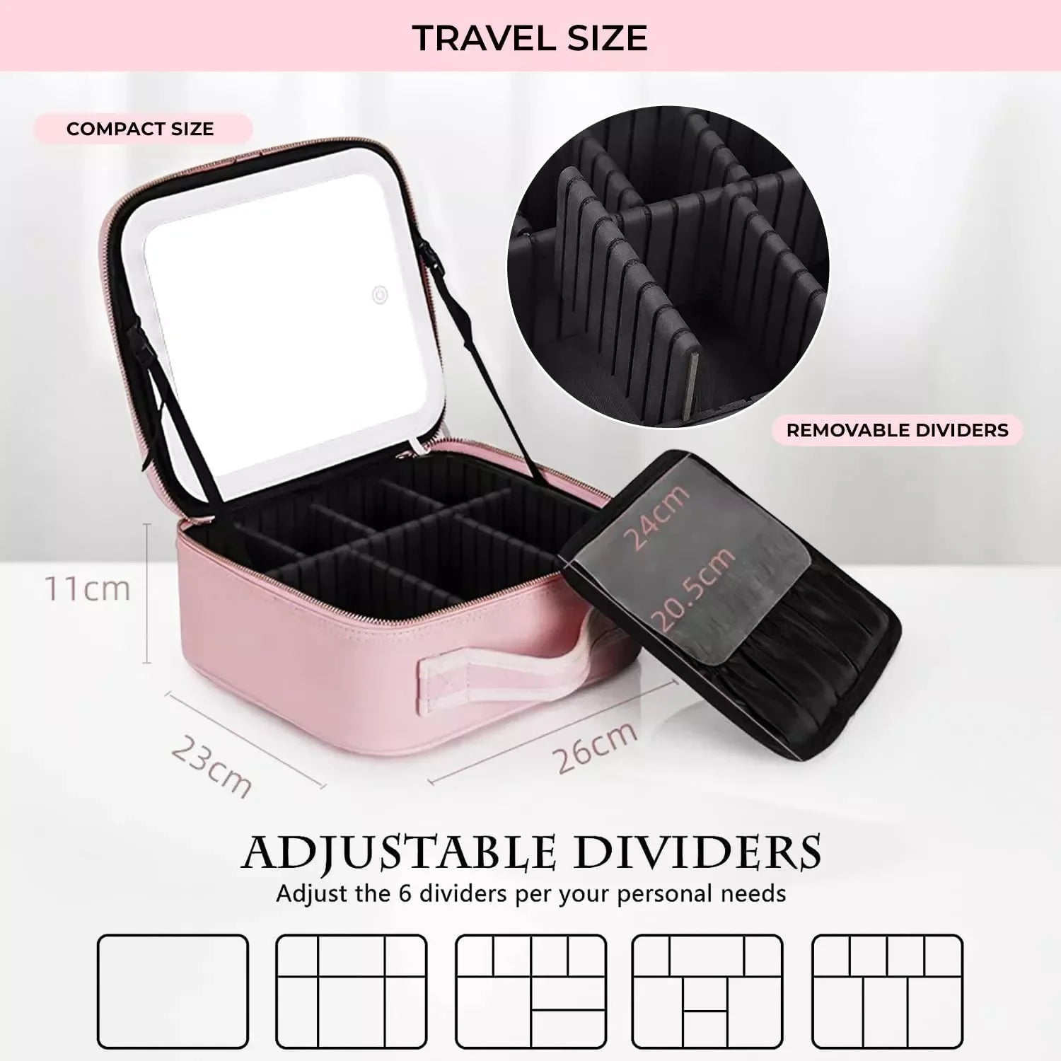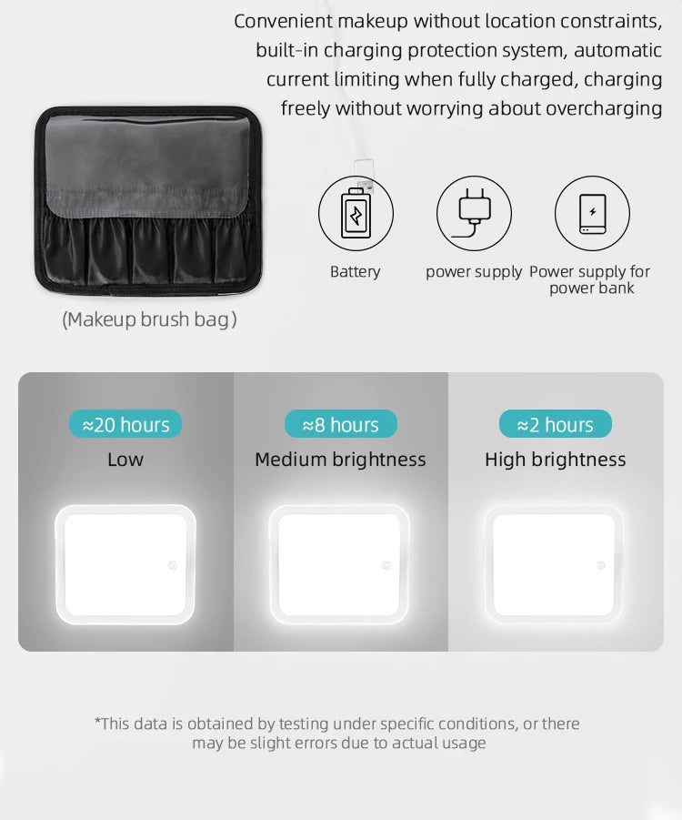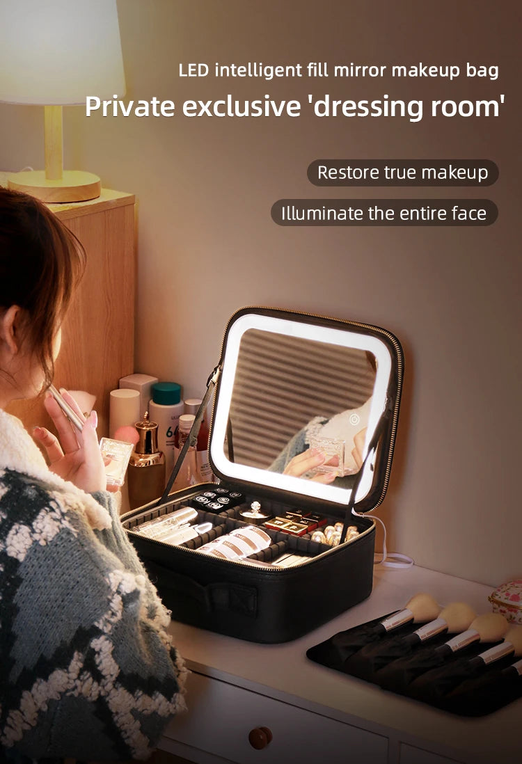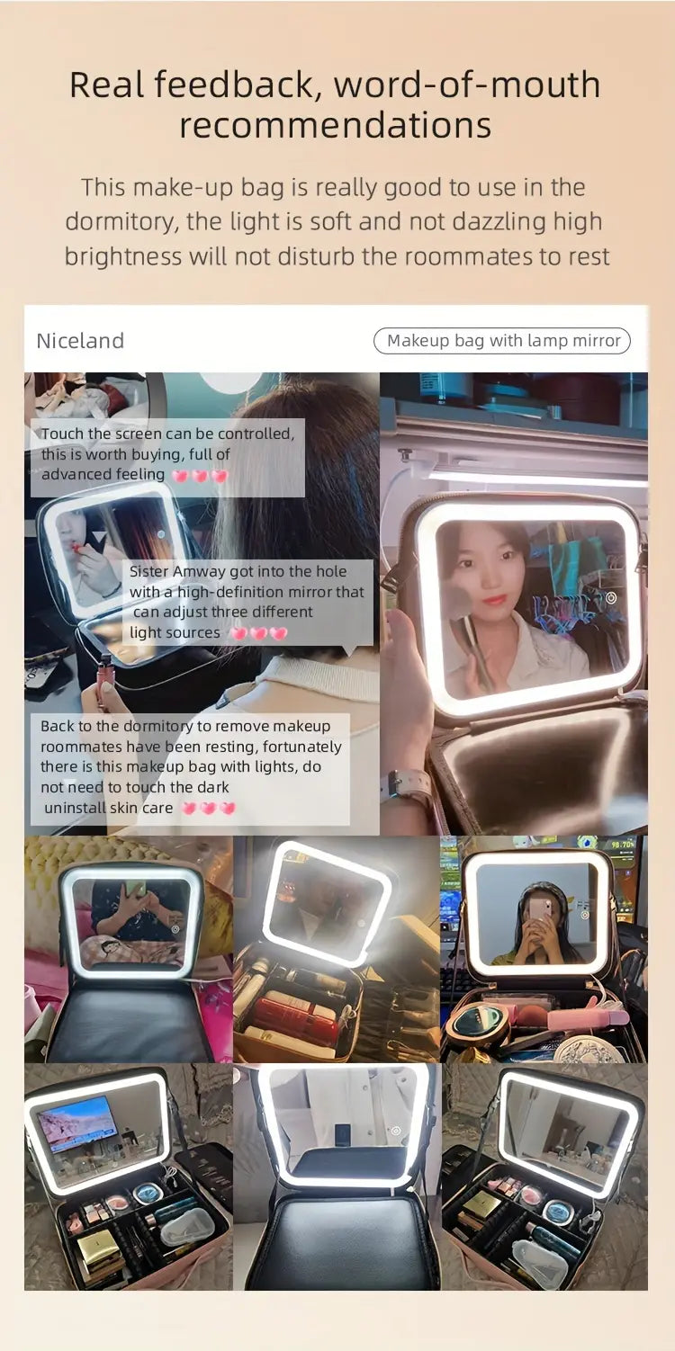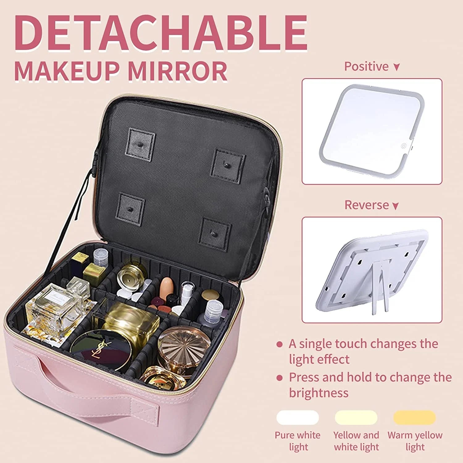 *GAME-CHANGING PORTABLE DRESSER: Large capacity cosmetic storage compartment, large makeup brush storage board, perfect lighting guarantee- thanks to an advanced luminous system which designed with 3 lighting environments, giving you the freedom to do your make-up comfortably anywhere. The innovation of this cosmetic case doesn't stop there: a single charge will last around one week.