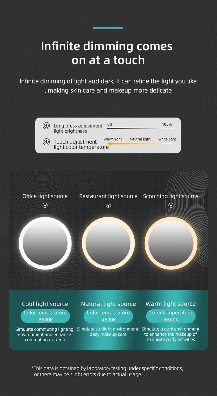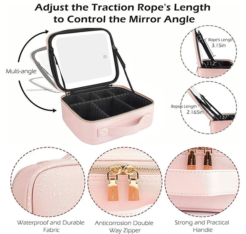*THREE WAYS TO FIND YOUR LIGHT: The full-screen light mirror can switch from warm white, neutral white, or natural daylight with a simple tap and the light brightness is adjustable with long press. You can feel confident your makeup is absolutely color-correct with lighted makeup case. And the mirror is designed with a adjustable strap that allows multiple angle for easy makeup application.
