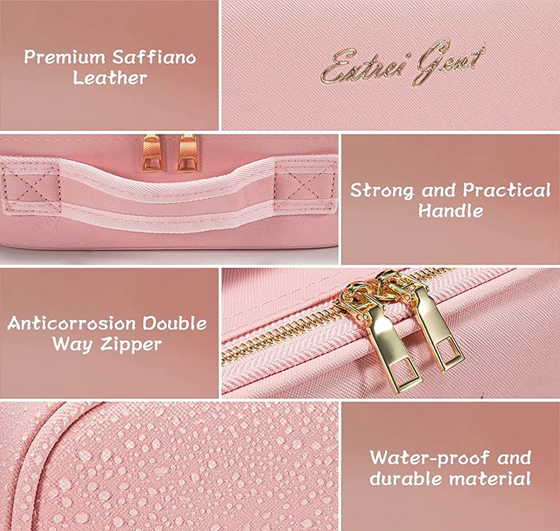 *IDEAL PERFECT GIFT: Makeup case is one of a perfect gift for her. It is not only storage your cosmetics, but also Jewelry, Electronic Accessories, Camera, Essential oil, Toiletries, Shaving Kit, Valuable objects and so on. A must-have for your and your family's travels.